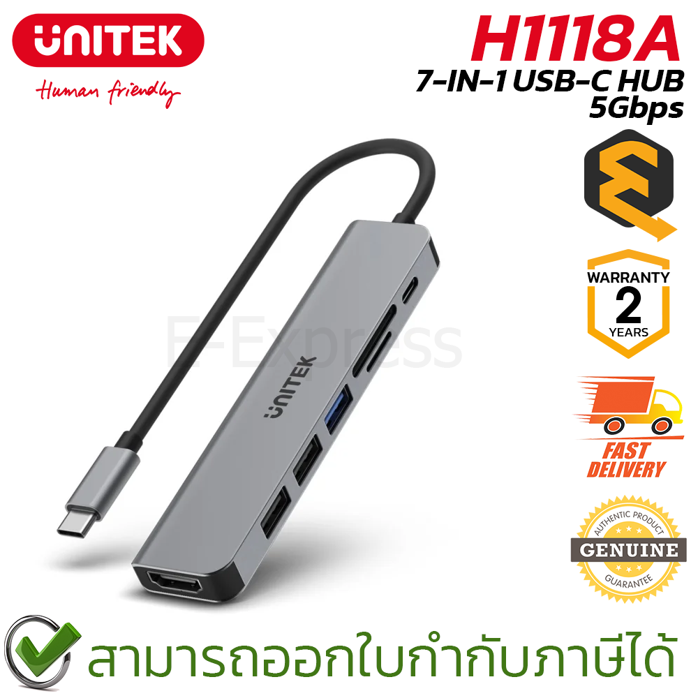 UNITEK H1118A 7-IN-1 USB-C Hub 5Gbps [Space Grey] ของแท้ ประกันศูนย์ 2ปี