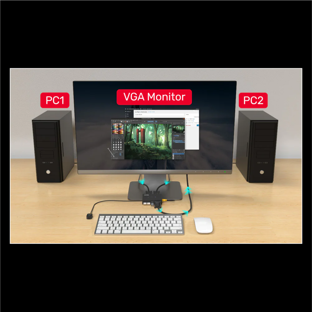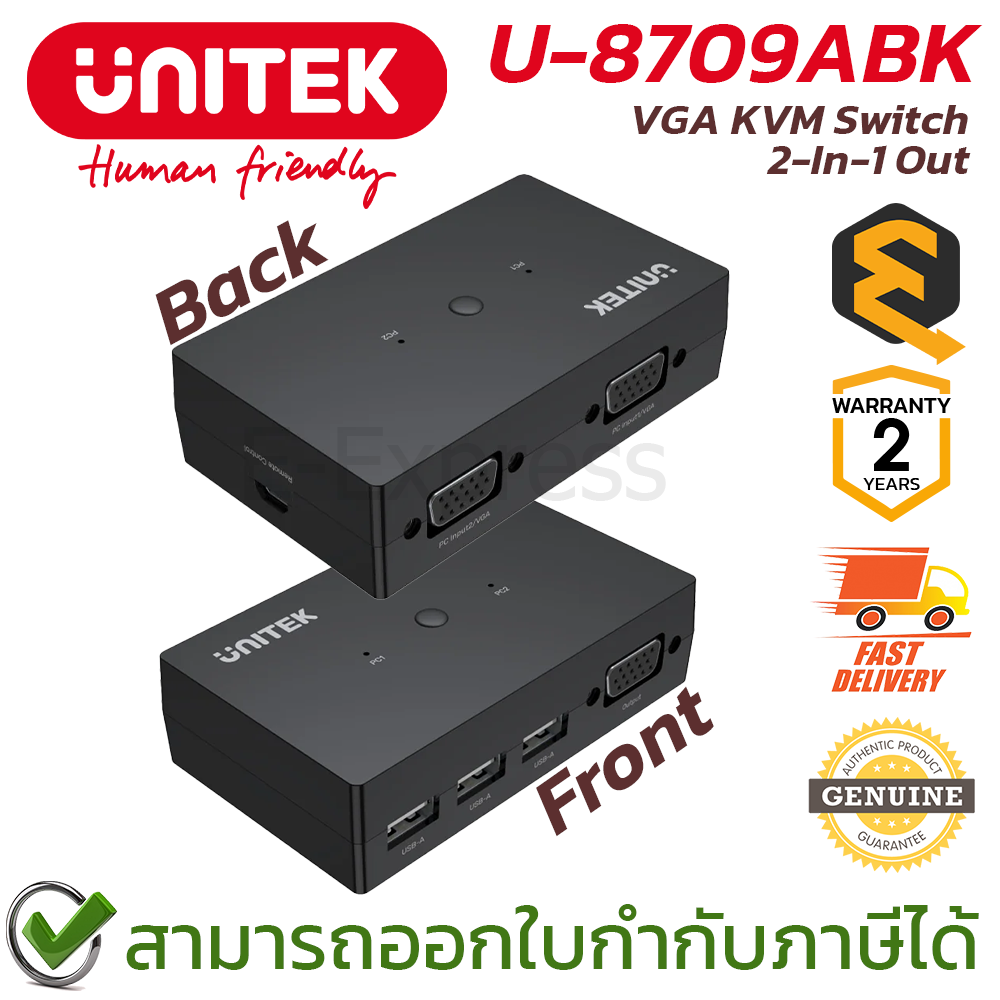 UNITEK U-8709ABK VGA KVM Switch 2-IN-1 ของแท้ ประกันศูนย์ 2ปี