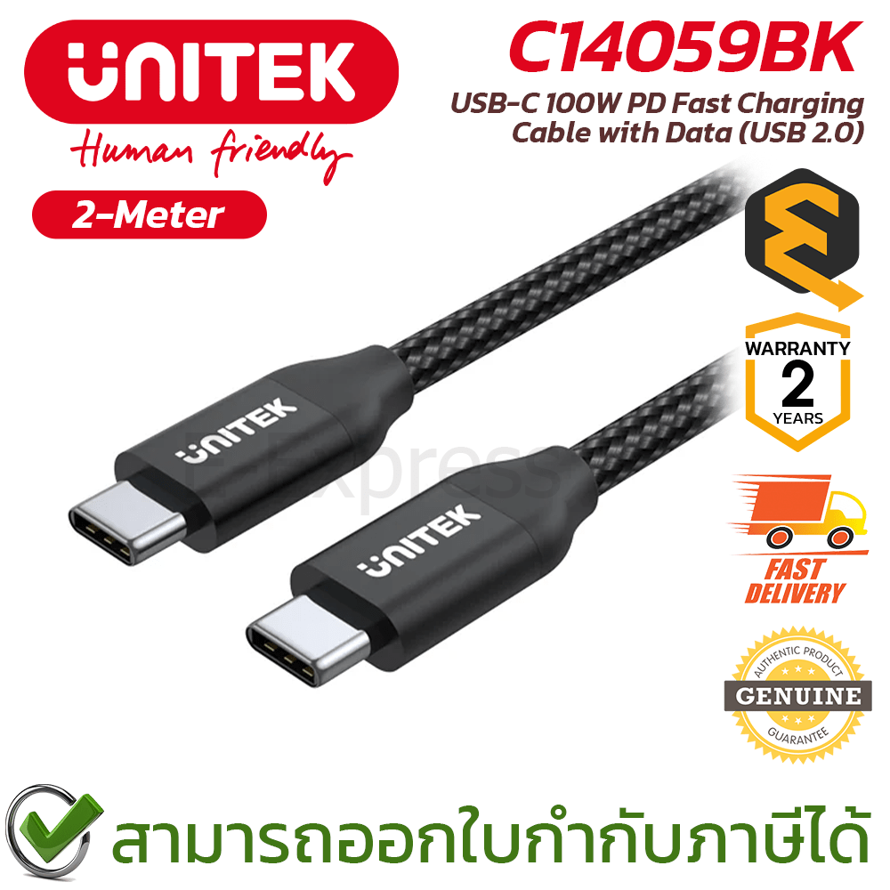 UNITEK USB-C 100W PD Fast Charging Cable [C14059BK] [2-Meter] สายเคเบิ้ล สายชาร์จ ของแท้ ประกันศูนย์ 2ปี