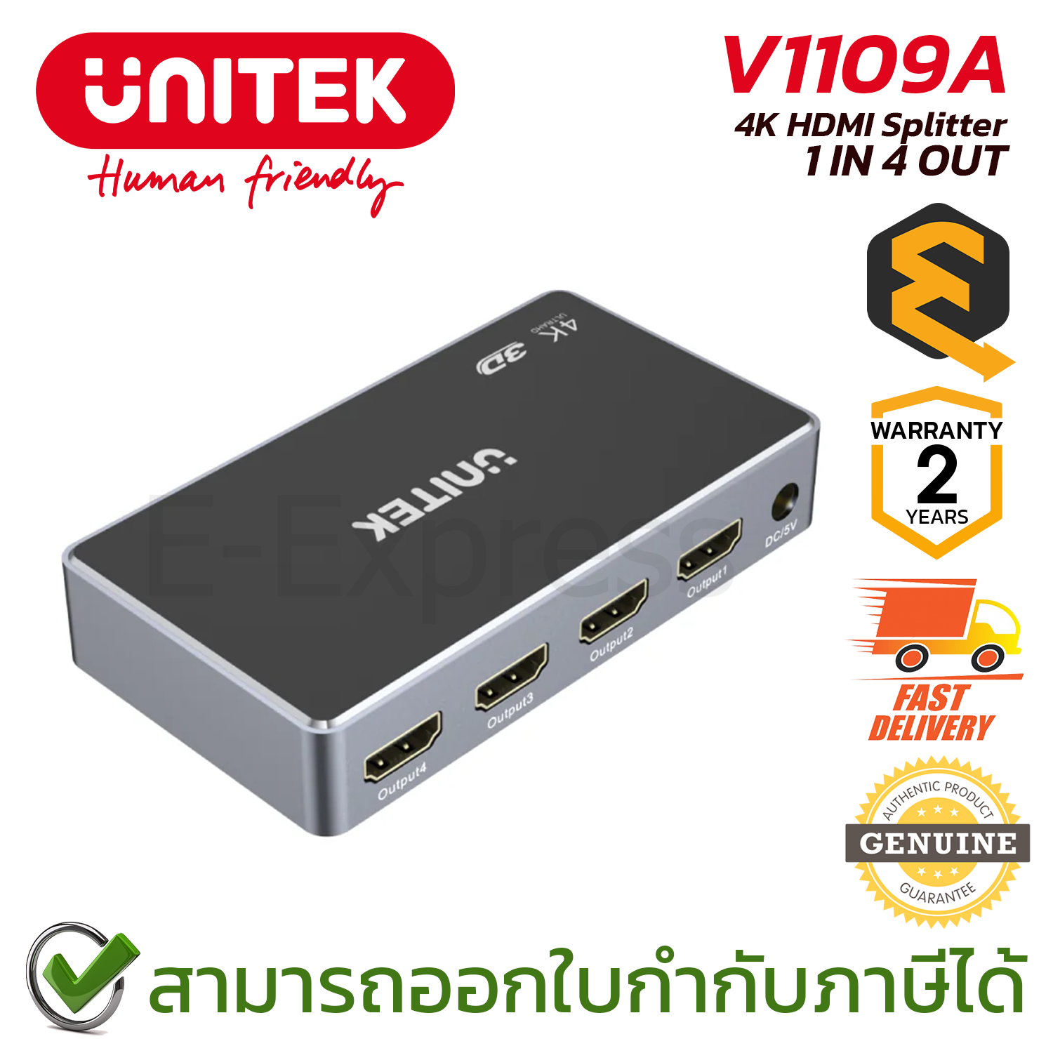 ✅ แยก 1 เป็น 4: รับสัญญาณเข้า 1 ช่อง และกระจายออกไป 4 ช่องพร้อมกัน