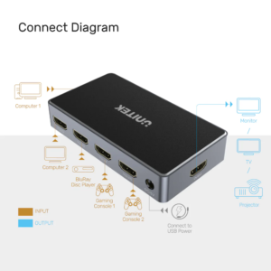 ✅ สลับจอได้ 5 อุปกรณ์: เชื่อมต่อเครื่องเล่นเกม, กล่องทีวี หรือคอมพิวเตอร์เข้ากับทีวีเครื่องเดียวได้พร้อมกัน 5 เครื่อง