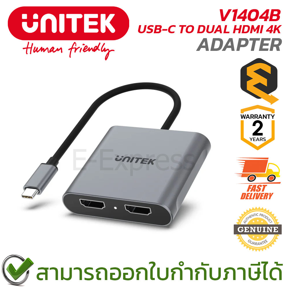 UNITEK V1404B USB-C to Dual HDMI 4K Adapter อุปกรณ์แยกสัญญาณจอภาพ ของแท้ ประกันศูนย์ 2ปี