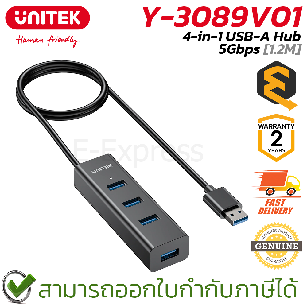 UNITEK 4-in-1 USB-A Hub has 4 USB-A ports with data transfer speed 5Gbps on all ports. Large files, HD movies and songs can be transferred in seconds.