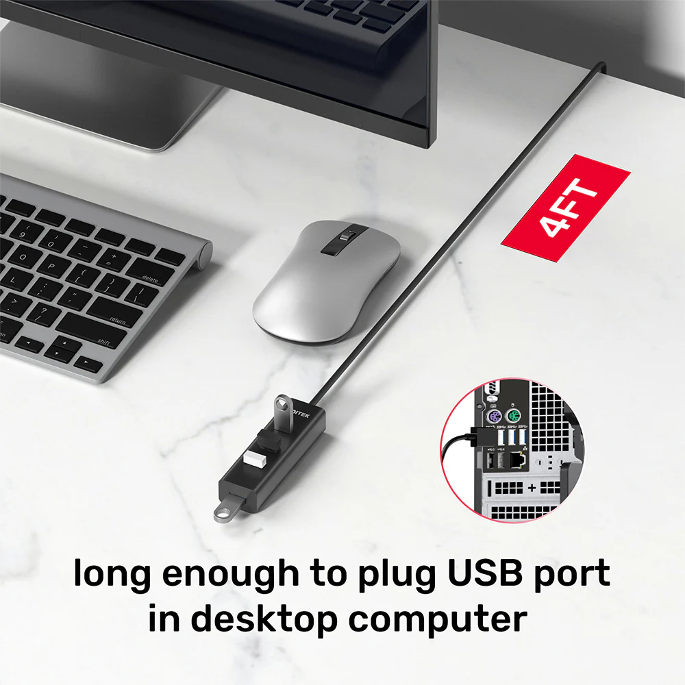Compatible with almost all USB-A devices including MacBook Pro as well as operating systems: Windows and MacOS, etc. The Hub comes with a 4FT (120cm) USB Extension Cable for connection and extension as well.