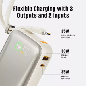 ✅ มาพร้อมสาย Built-in Type-C ที่แข็งแรงทนการบิดงอมากกว่า 10,000 ครั้ง