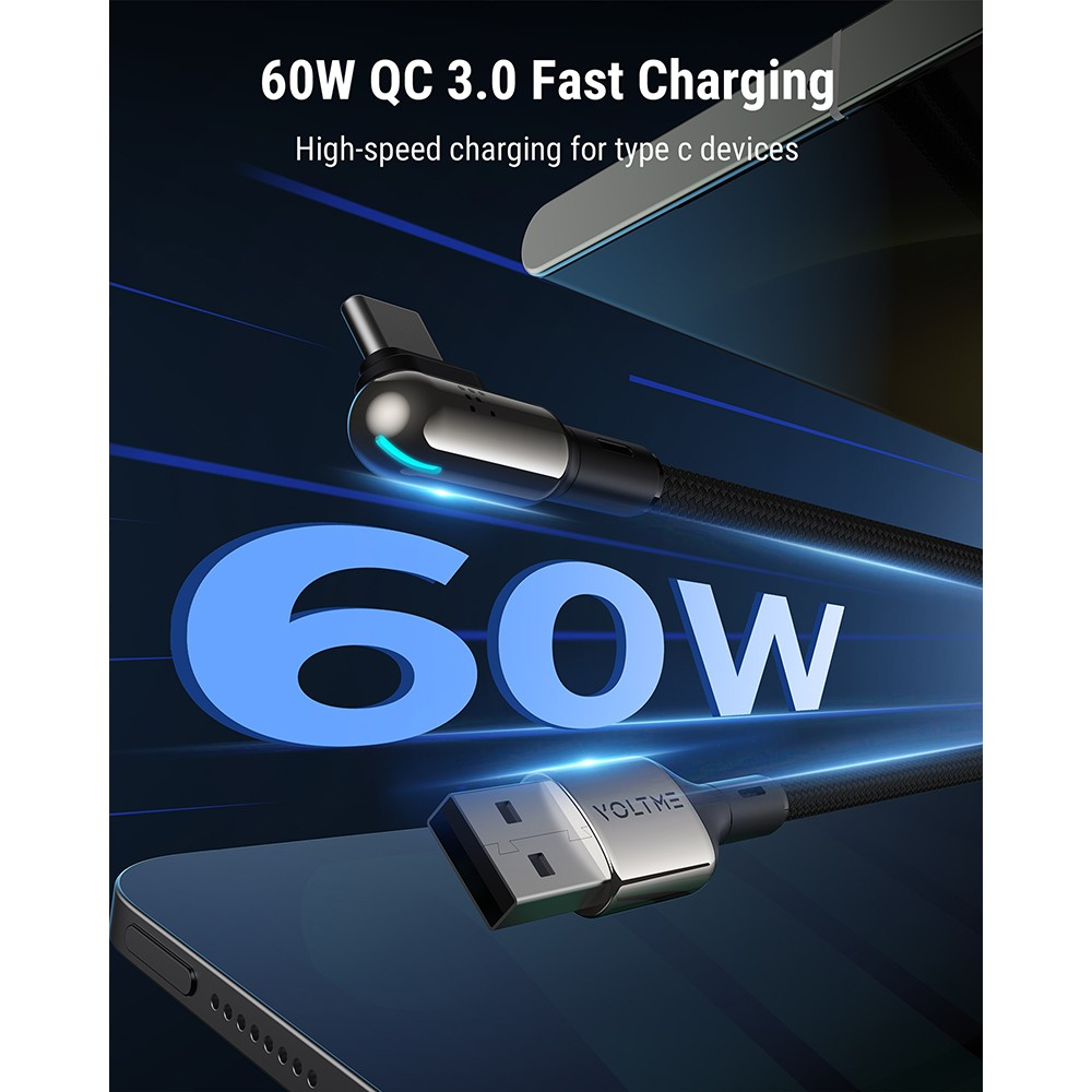 VOLTME USB-C cable supports up to 60W power delivery, allowing fast charging for smartphones, tablets, laptops, and other devices when used with a compatible charger. It also supports high-speed data transfer up to 480Mbps, enabling the transfer of a 1GB file in seconds. This cable can be used for both charging and data transfer.