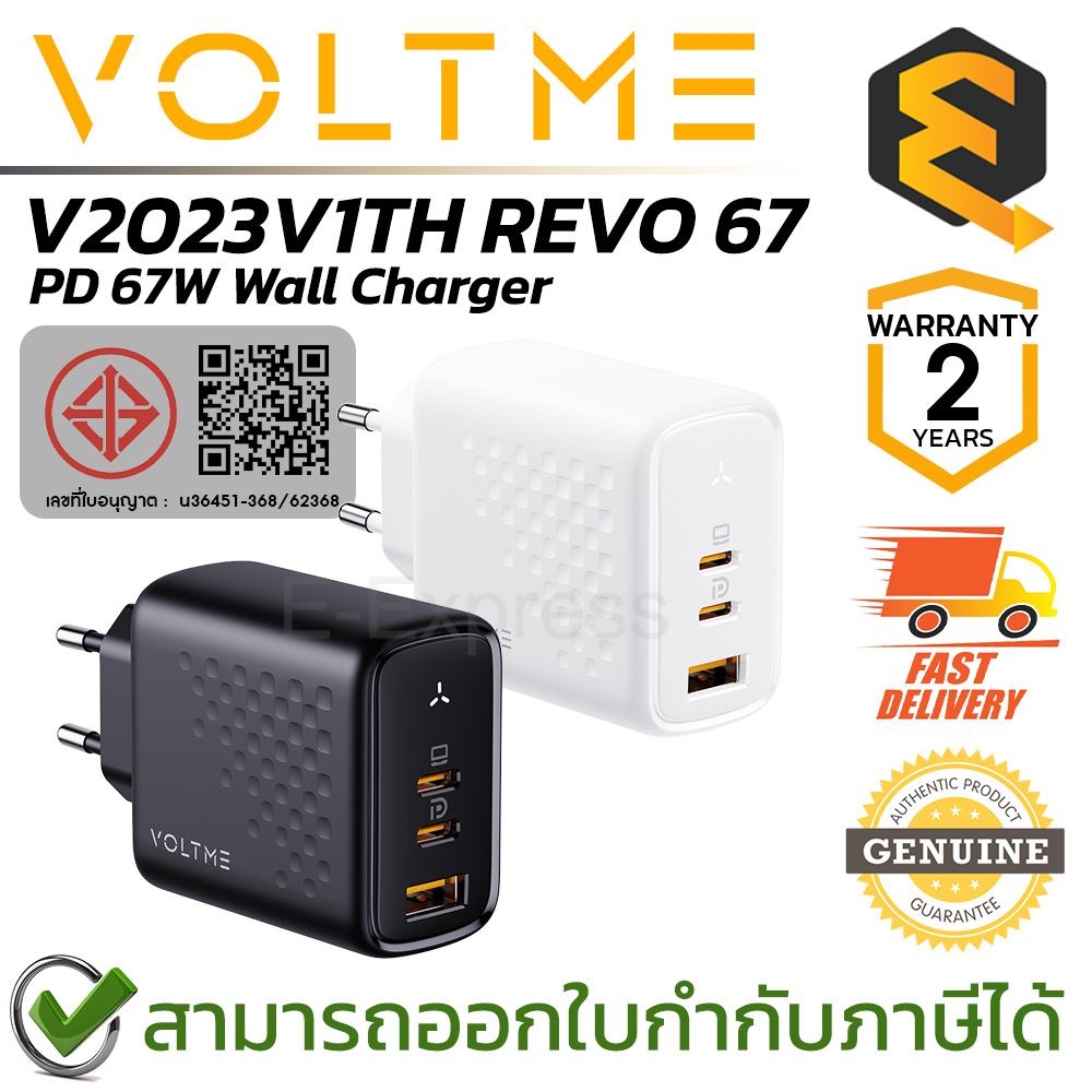 Voltme Wall Charger with GAN Tech PD 67W อแดปเตอร์ชาร์จ สำหรับใช้ร่วมกับสินค้าแบรนด์ Apple ของแท้ ประกันศูนย์ 2ปี