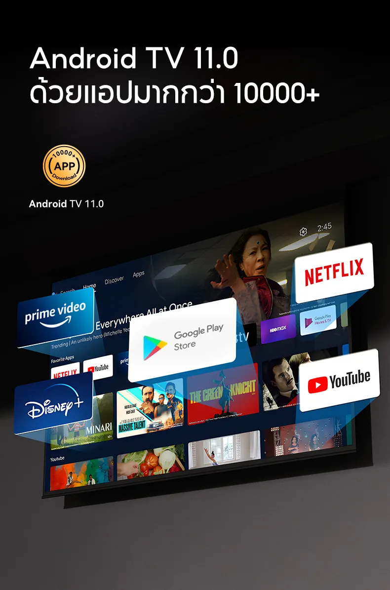 🔹 ระบบปฏิบัติการ – Android TV 11.0(ดาวน์โหลดแอปใน Google Play Store)