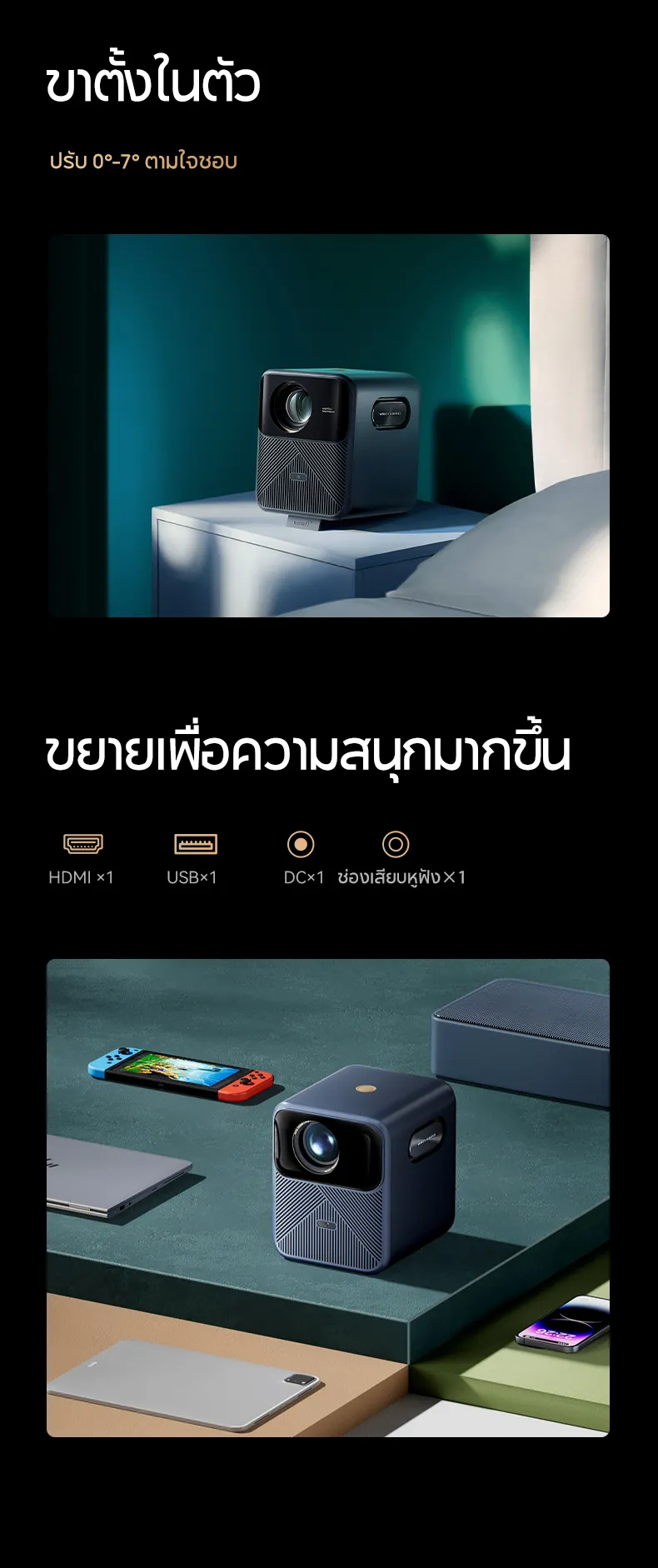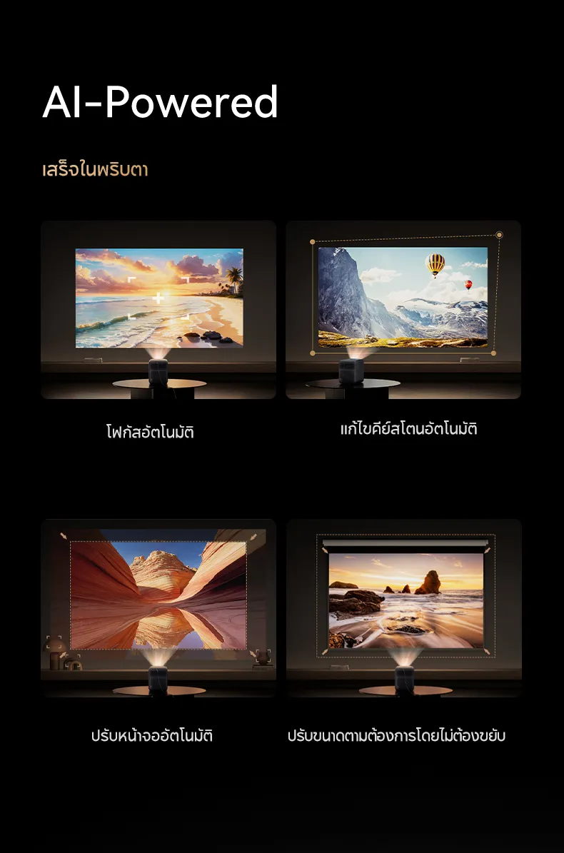 ✅ สามารถปรับ Auto Focus / Auto Key Stone Correction / หลบสิ่งกีดขวาง / Auto Screen Fit