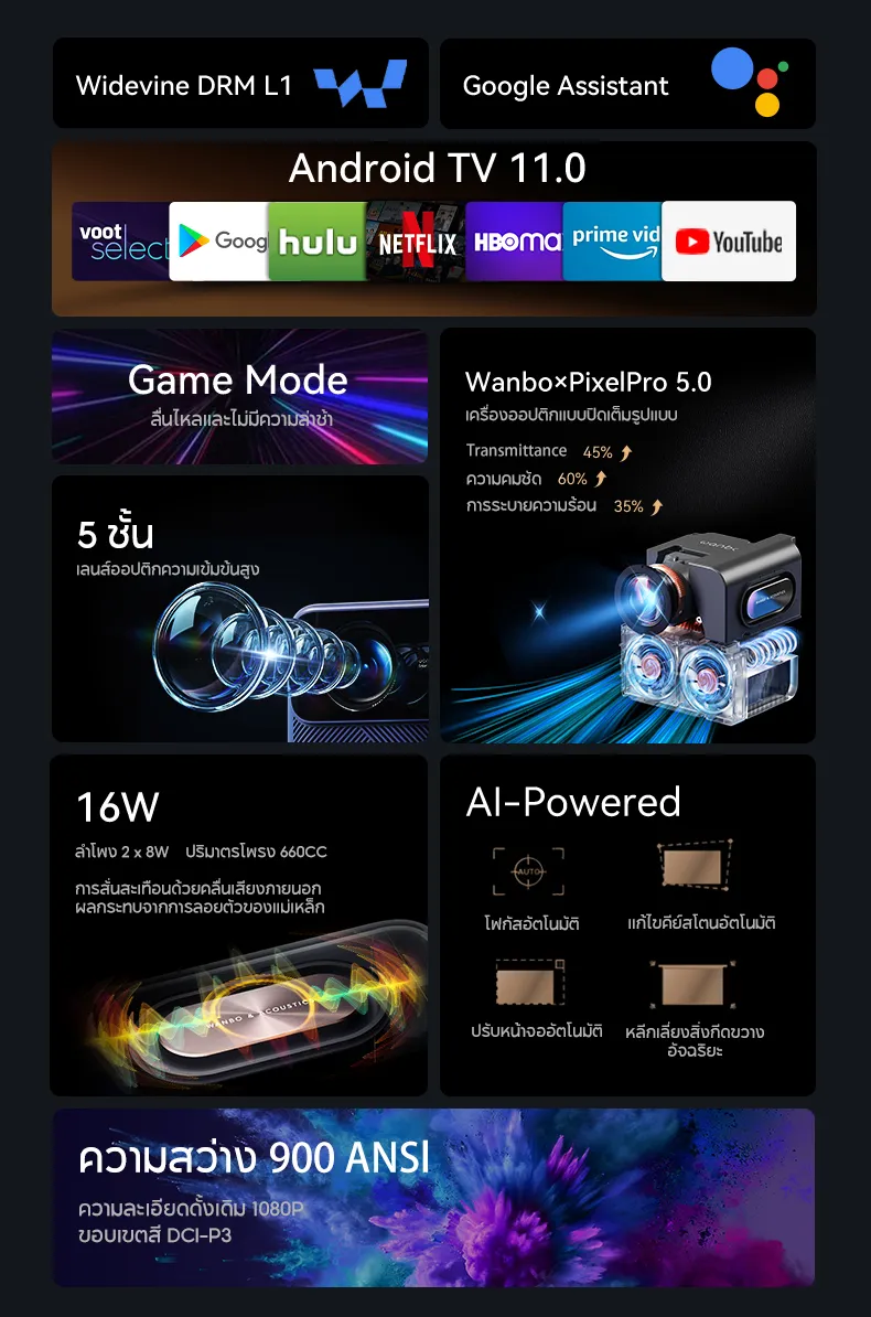 ✅ โปรเจคเตอร์ สมาร์ท ระบบปฎิบัติการ Android TV 11.0