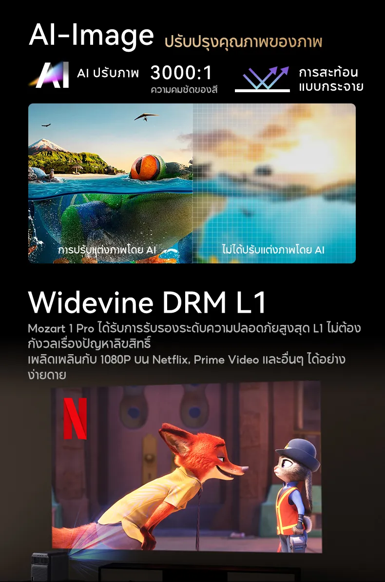 🔹 Widevine DRM L1 Mozart 1 Pro ได้รับการรับรองระดับความปลอดภัยสูงสุด L1 ไม่ต้องกังวลเรื่องปัญหาลิขสิทธิ์ เพลิดเพลินกับ 1080P บน Netflix, Prime Video และอื่นๆ ได้อย่างง่ายดาย