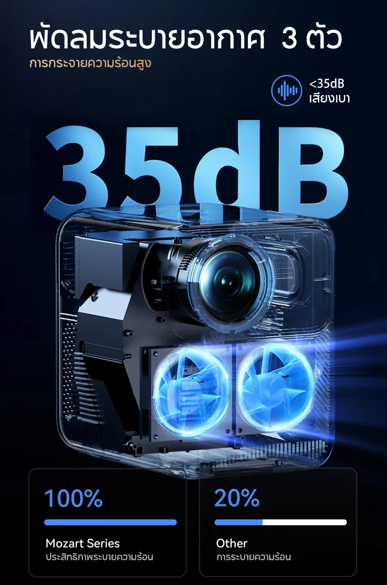 🔹 ระบายยความร้อนไหลเวียน กระจายความร้อนอย่างมีประสิทธิภาพ ไร้เสียงรบกวน