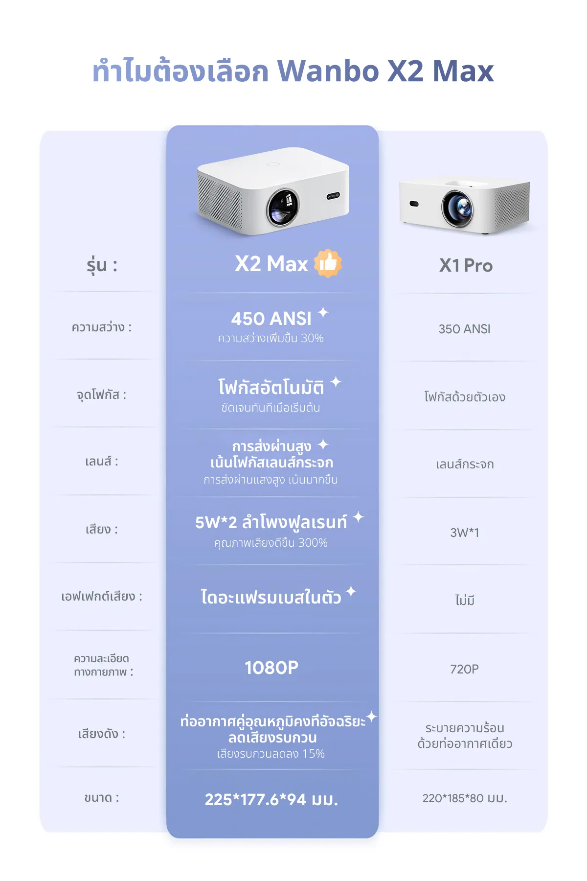 ✅ รองรับการฉายภาพ : 40-120 นิ้ว ระยะการฉายภาพที่แนะนำ 1.2 – 3.6 เมตร