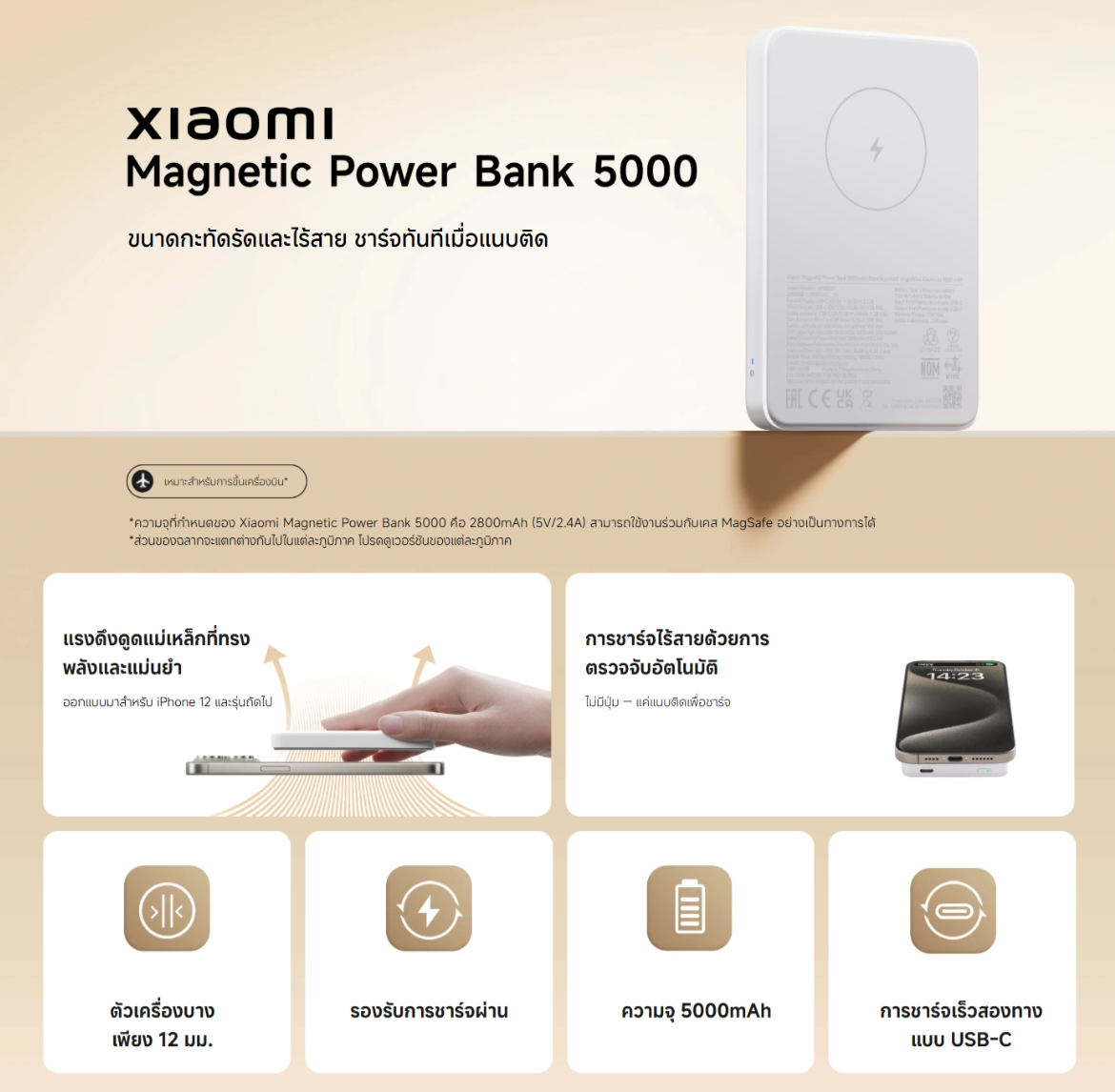 ✅ มีแม่เหล็กในตัว รองรับ iPhone 12 หรือใหม่กว่า แรงดูด 10N