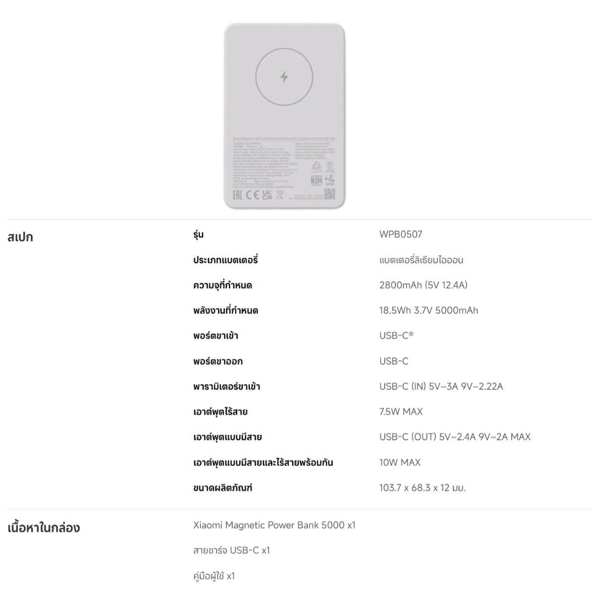 ✅ ขนาดแบตเตอรี่ : 18.5Wh 3.7V 5000mAh
