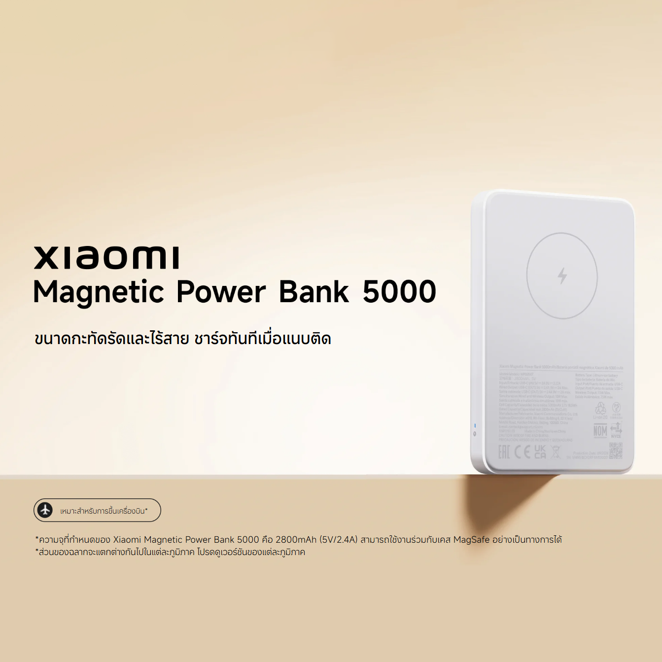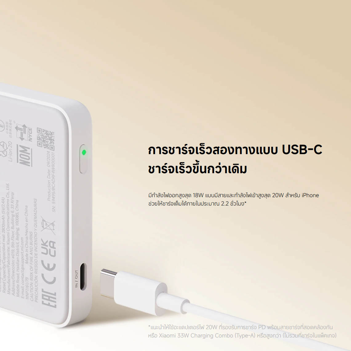 มีกำลังไฟออกสูงสุด 18W แบบมีสายและกำลังไฟเข้าสูงสุด 20W สำหรับ iPhone ช่วยให้ชาร์จเต็มได้ภายในประมาณ 2.2 ชั่วโมง*