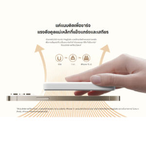 ด้วยเทคโนโลยีการชาร์จ MagSafe แม่เหล็กจะจัดตำแหน่งอย่างลงตัวเพื่อการเชื่อมต่อที่ราบรื่นและชาร์จทันที ด้วยแรงดูด 10N ที่แข็งแกร่ง* ให้ประสิทธิภาพที่ดีแม้ใส่เคส*