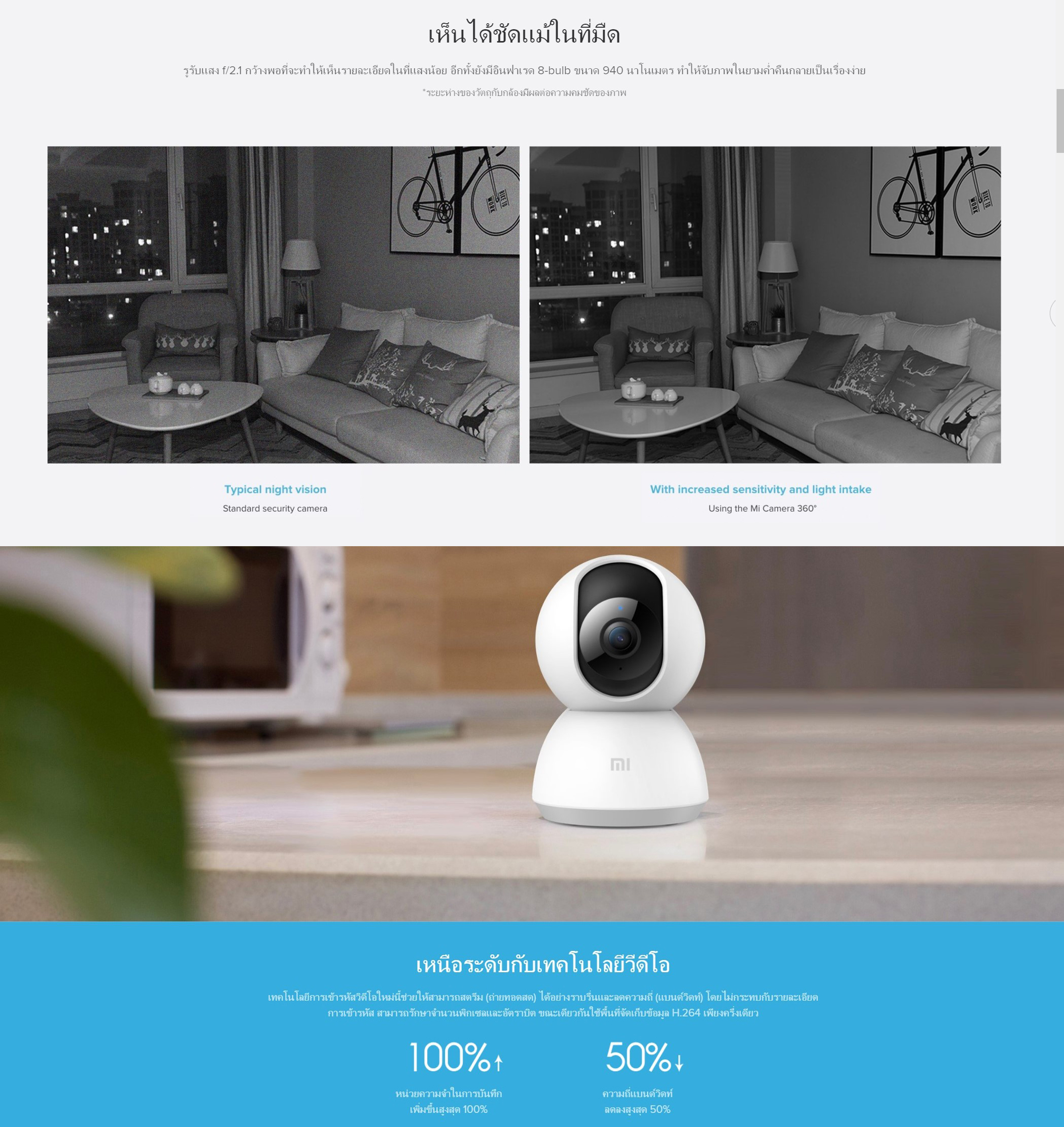 - อุปกรณ์ในกล่อง : กล้อง Mi Home จำนวน 1 ชิ้น / สายชาร์จ USB จำนวน 1 ชิ้น / ชุดยึดผนัง จำนวน 1 ชุด / คู่มือการใช้งานภาษาอังกฤษ 1 ชุด