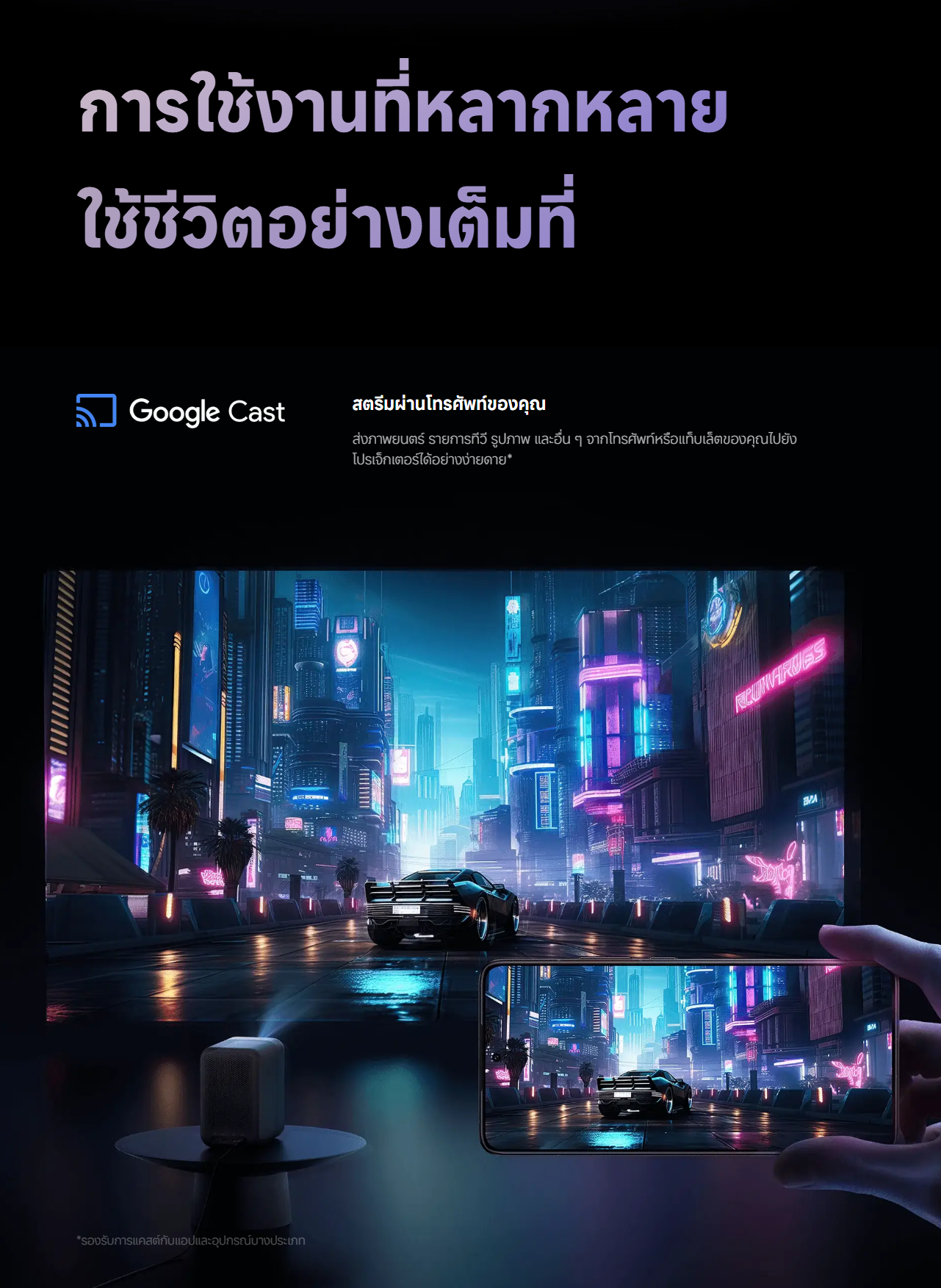 ✅ รองรับการแคส Mirroring Display จากมือถือ ผ่าน Google Cast