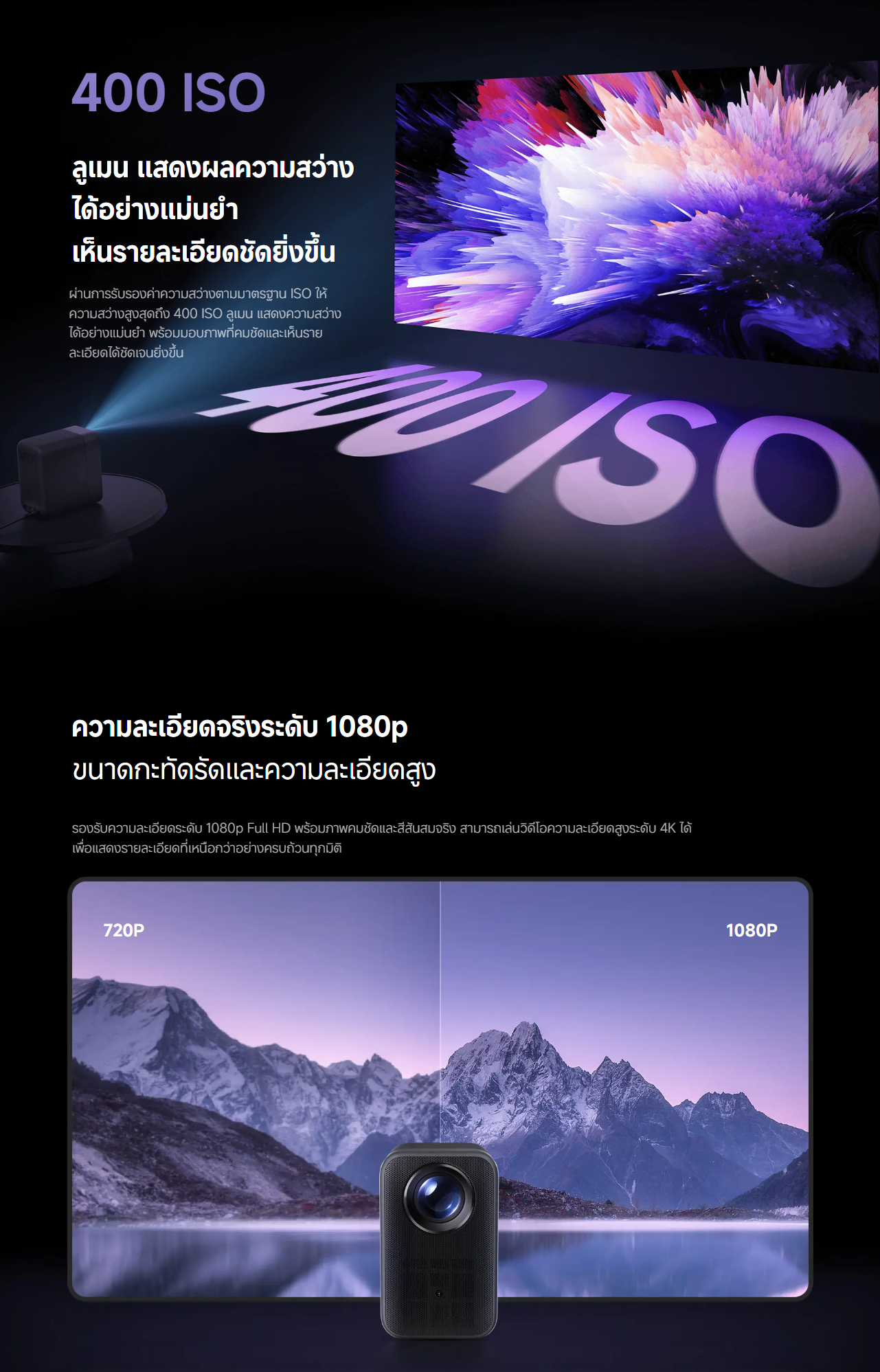 ✅ ฉายความคมชัด 1080 P HD รองรับการเล่นไฟล์ 4K