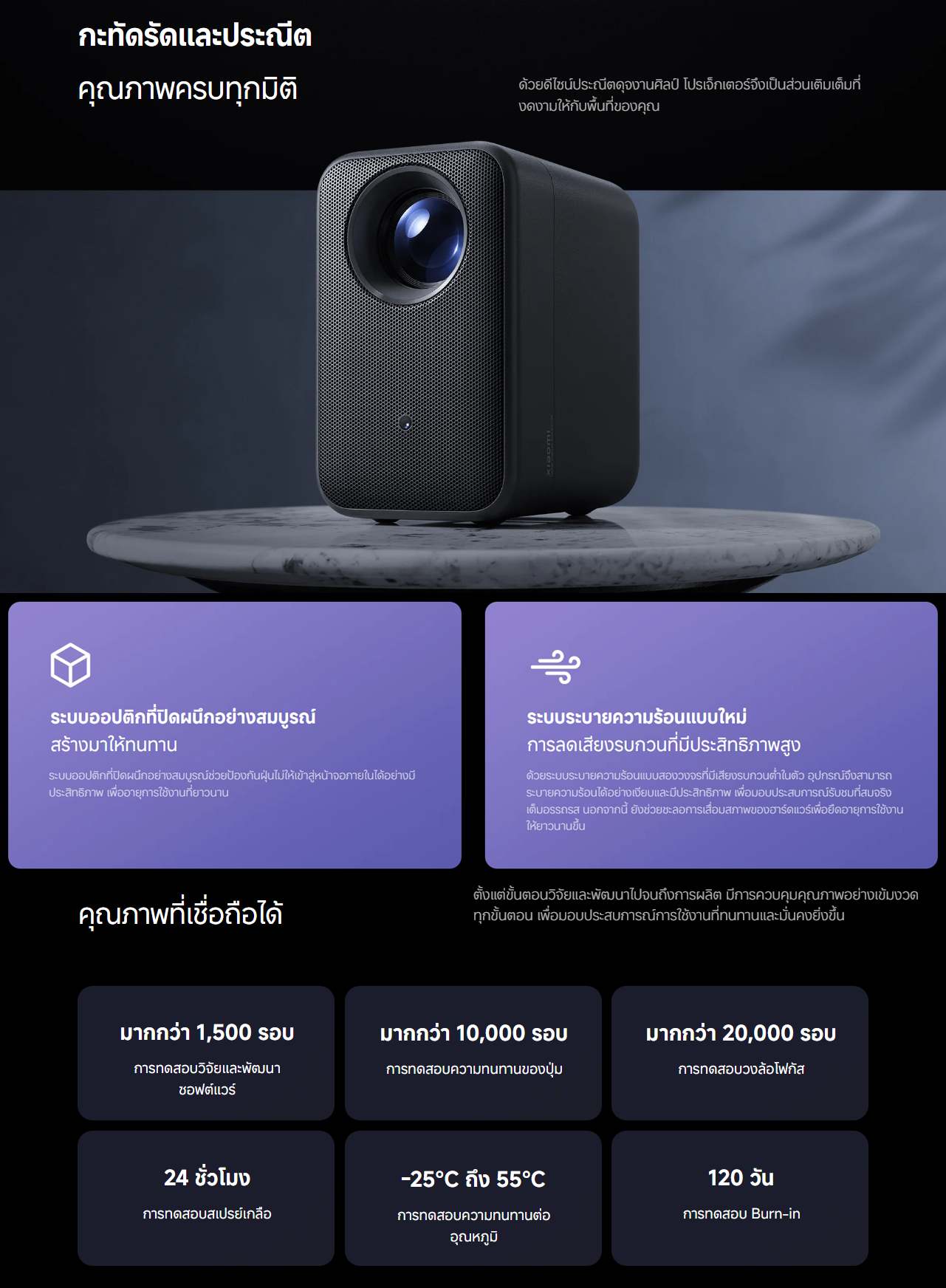 🔻 เสียงรบกวน – ≤ 30 dB(A) (โหมดโรงภาพยนตร์ที่อุณหภูมิห้อง 25°C)