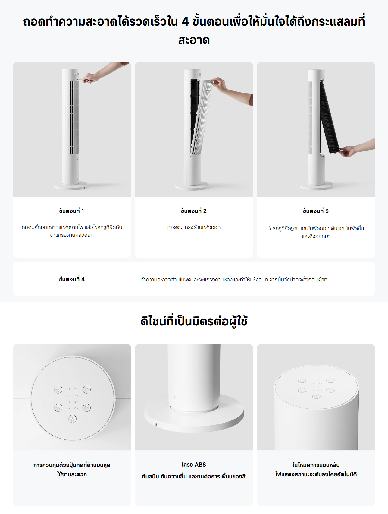 ✅ ถอดทำความสะอาดใบพัดได้รวดเร็วใน 4 ขั้นตอน