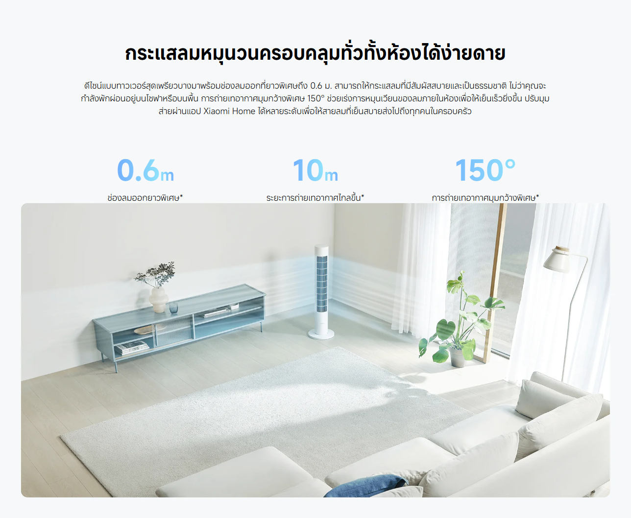 ✅ กระแสลมหมุนวน ครอบคลุมทั่วทั้งห้องด้วยระยะการถ่ายเทอากาศที่ไกลถึง 10 เมตร