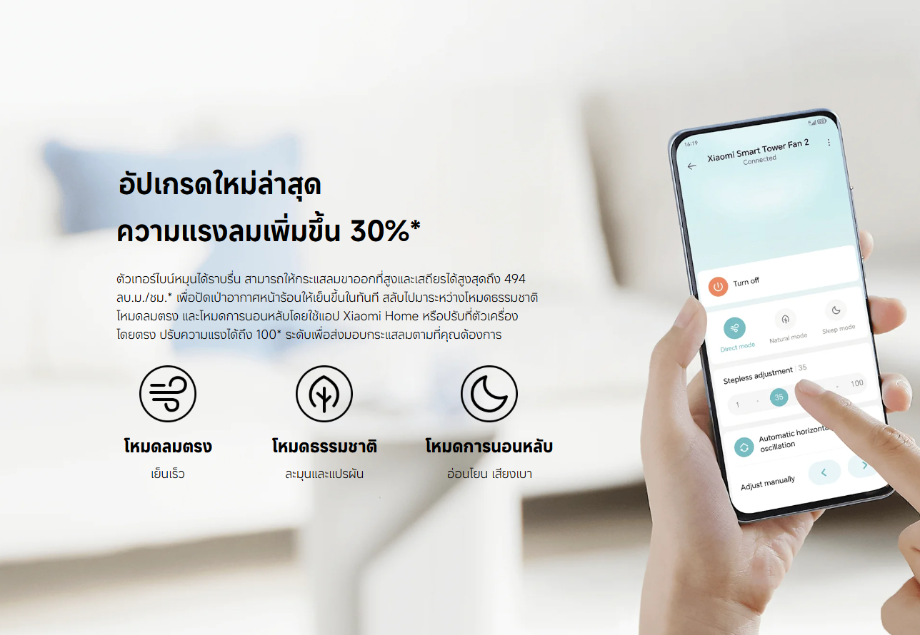 ✅ ปรับ mode การใช้งานได้ 3 รูปแบบ Direct mode / Natural mode / Sleep mode