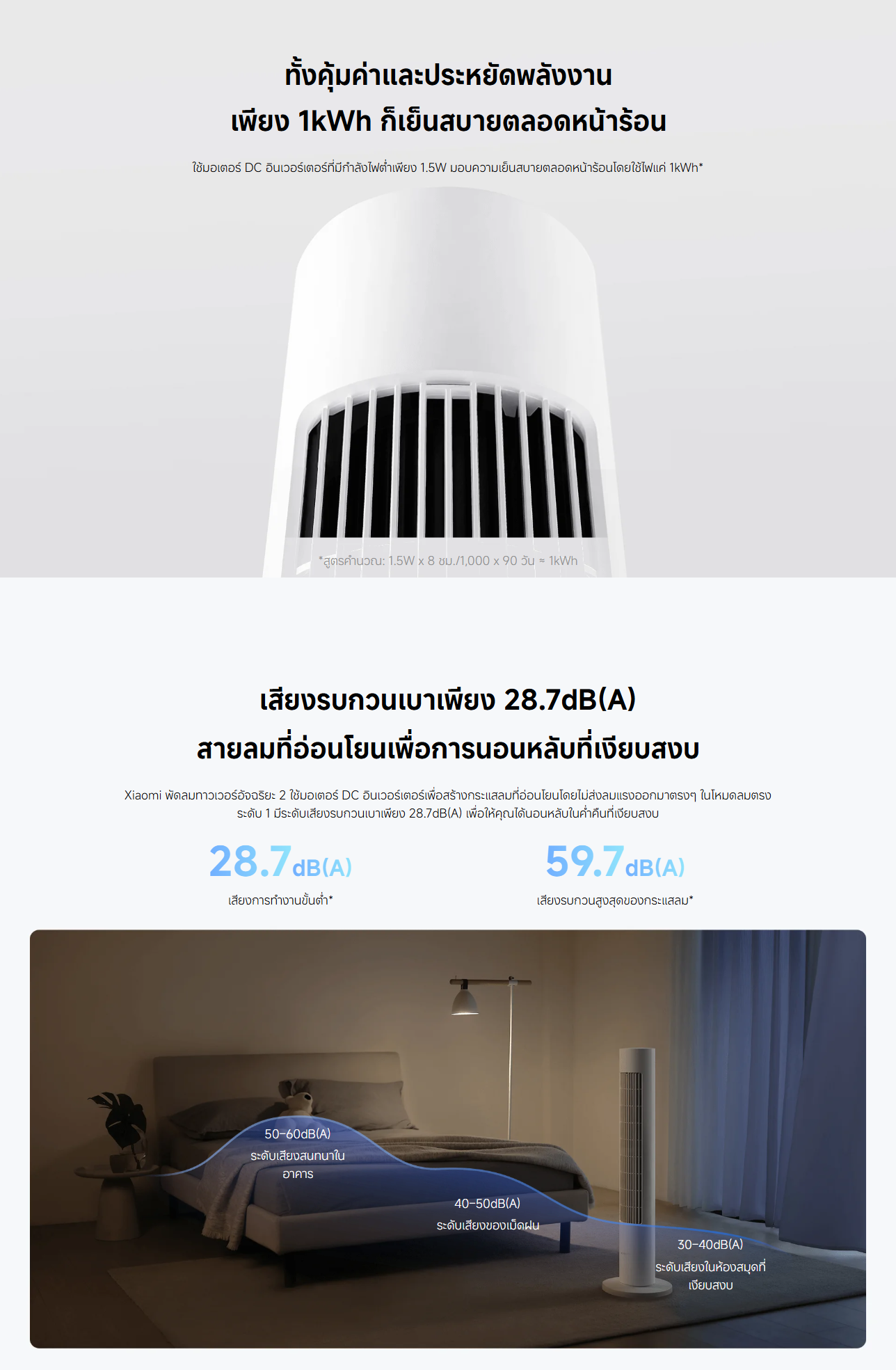 ✅ ใช้มอเตอร์ DC อินเวอร์เตอร์ที่มีกำลังไฟต่ำเพียง 1.5W มอบความเย็นสบายตลอดหน้าร้อนโดยใช้ไฟแค่ 1kWh