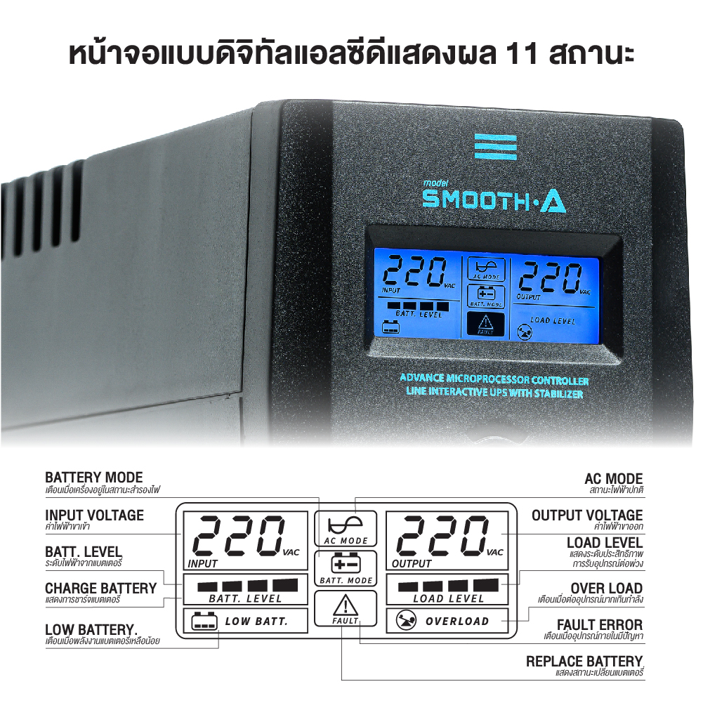 ✅ LCD Display มีหน้าจอแสดงผลการทำงานได้มากสูงสุดถึง 11 สถานะไฟฟ้า